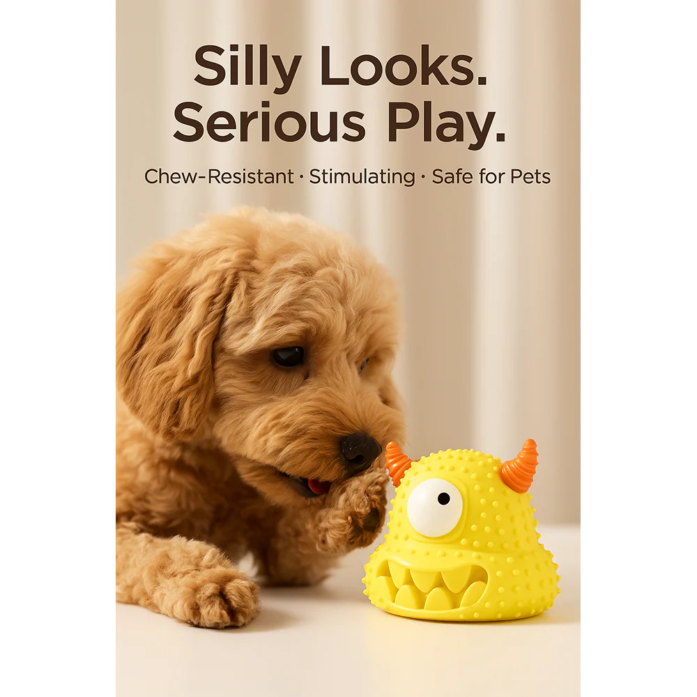 Talking Dog Club Monster Head Tough Rubber Chew Toy for Dogs (Yellow)