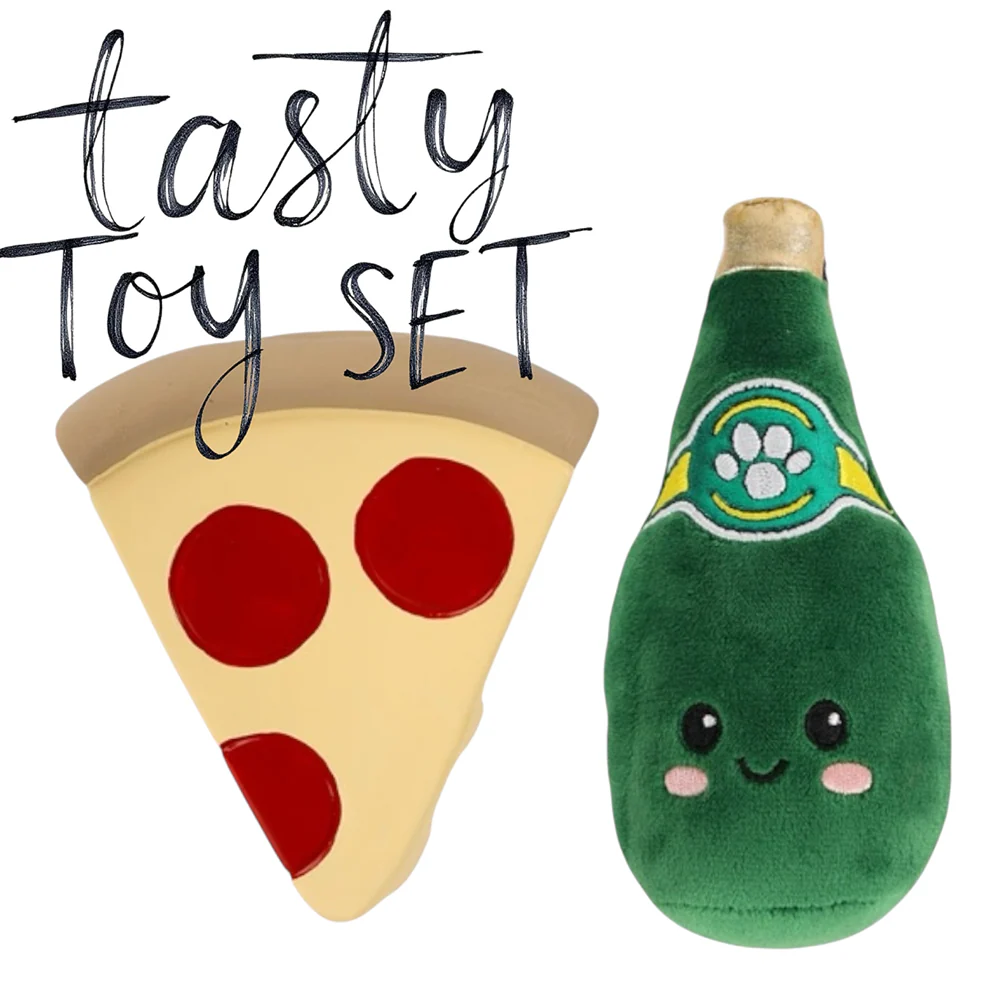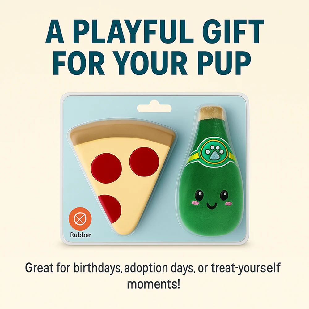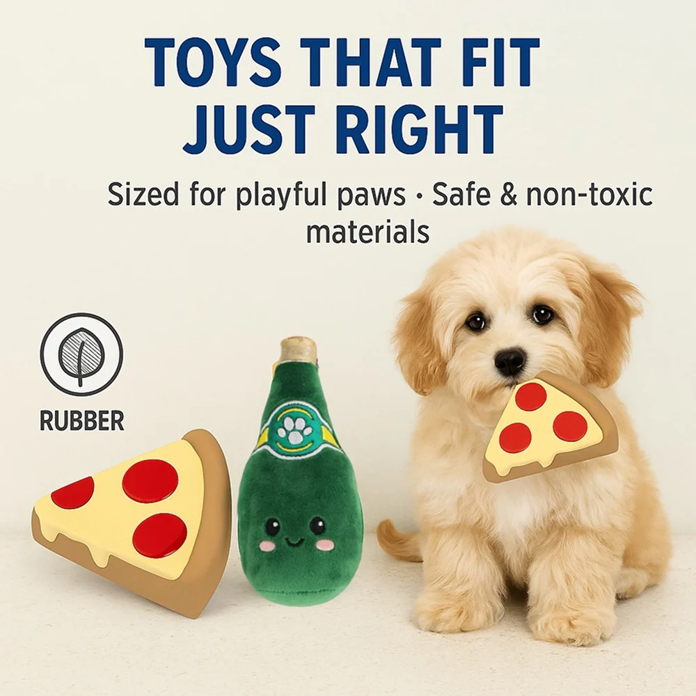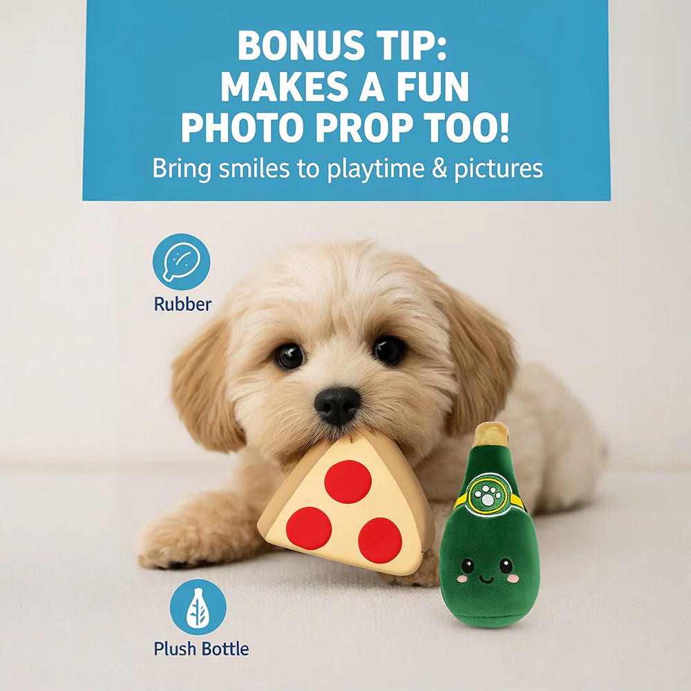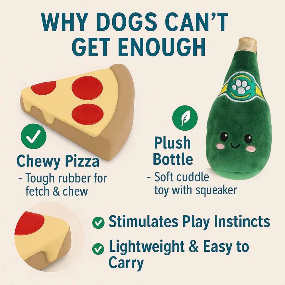 Talking Dog Club Pizza with Perrier Party Combo Plush Toy for Dogs (Red and Green)
