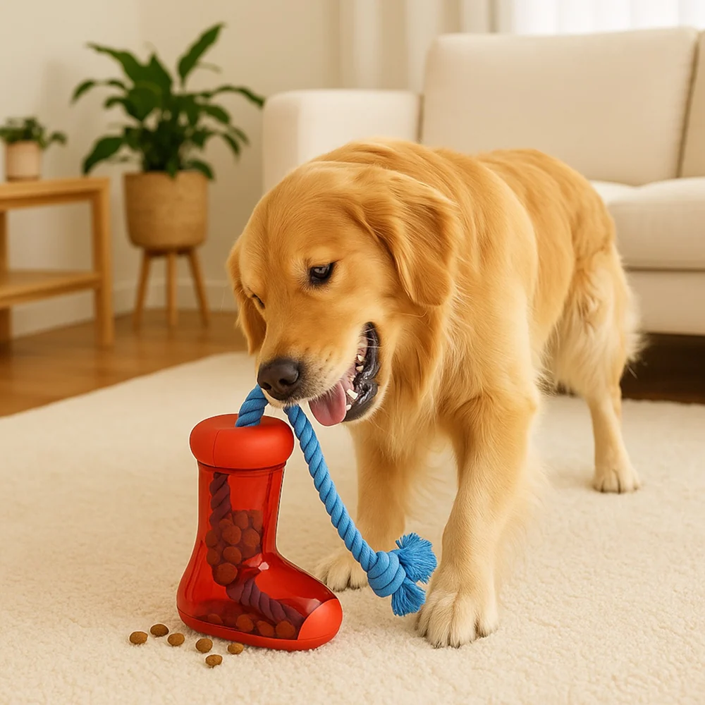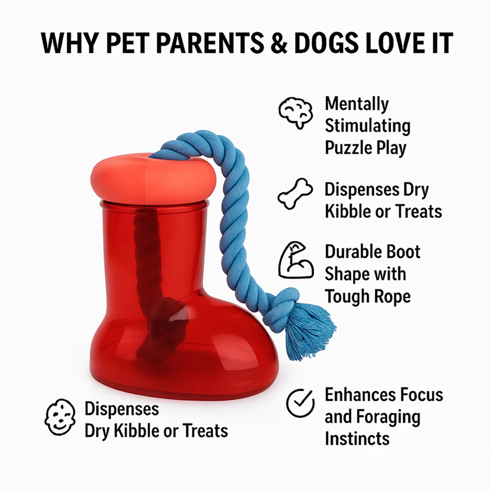 Talking Dog Club Big Boot Rubber and Rope Chew Treat Dispensing Toy for Dogs (Red)