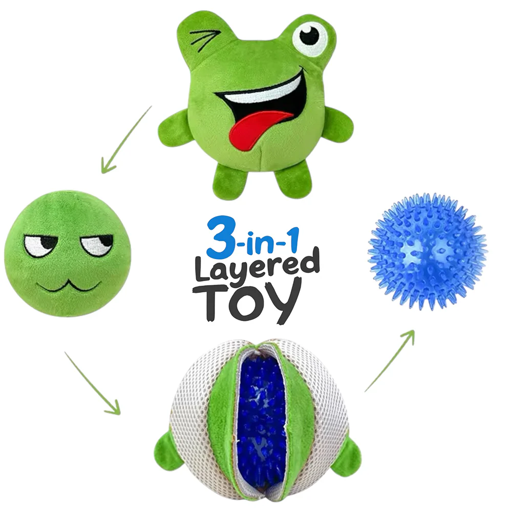 Talking Dog Club 3 in 1 Pop a Frog Bouncy Chew Toy for Dogs (Green)
