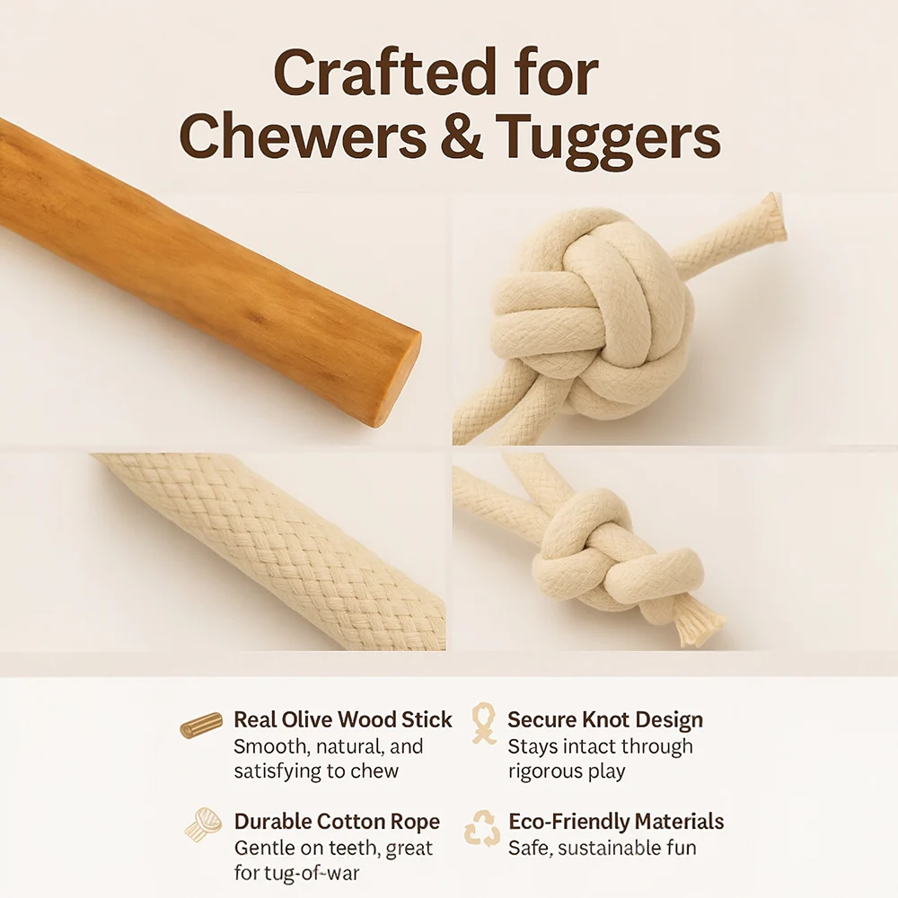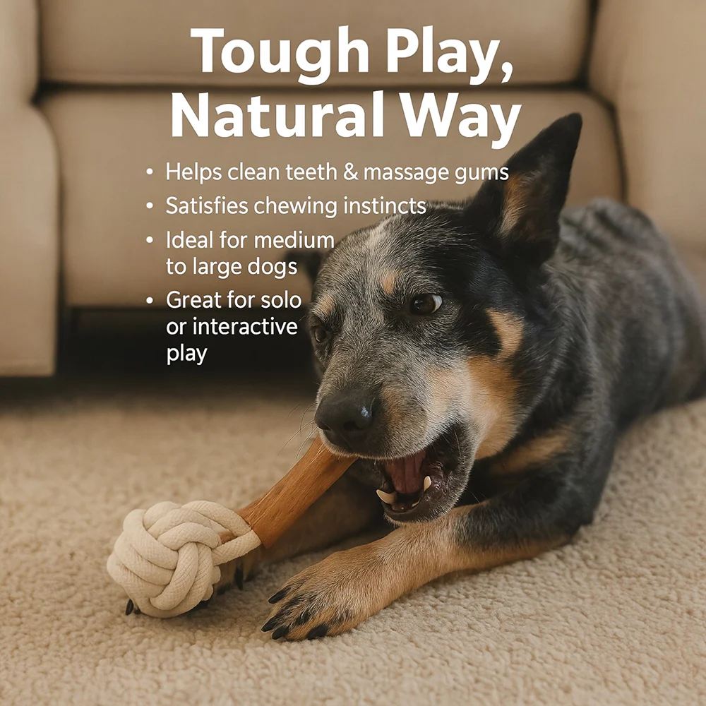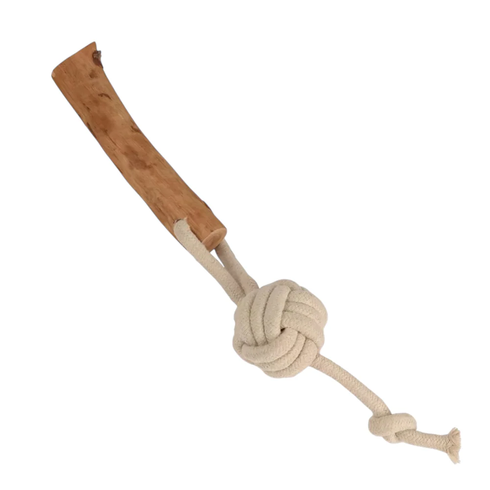 Talking Dog Club Natural Ball & Stick Tug Toy for Dogs (White and Brown)