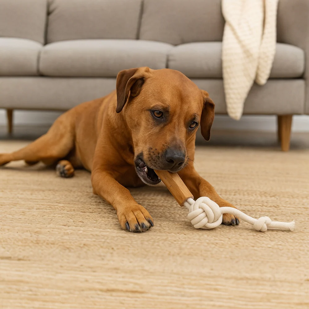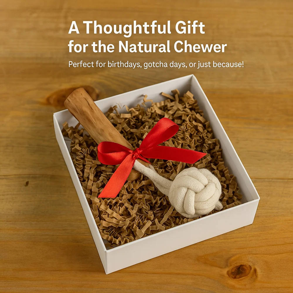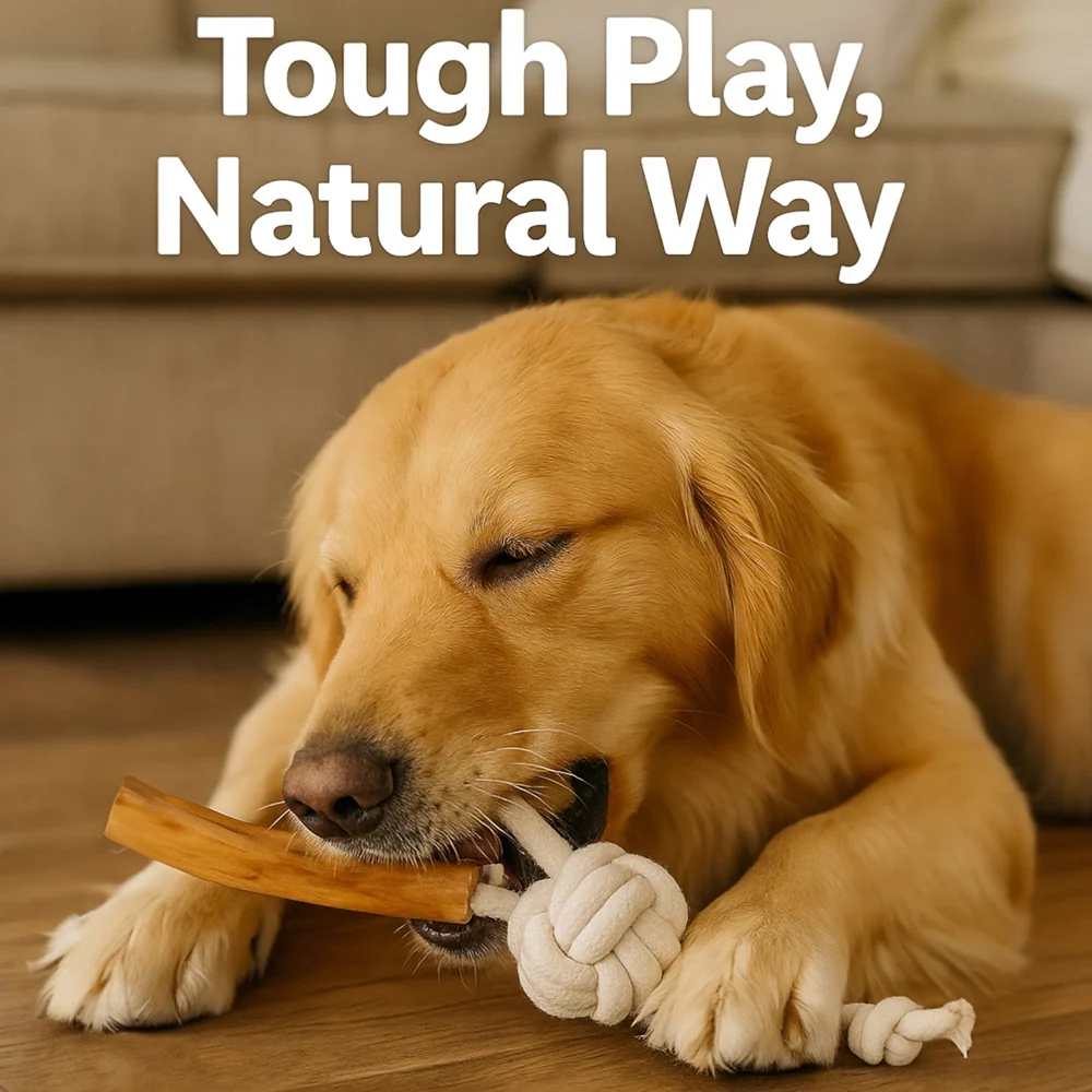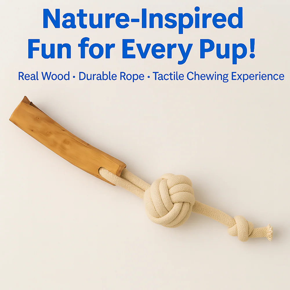 Talking Dog Club Natural Ball & Stick Tug Toy for Dogs (White and Brown)