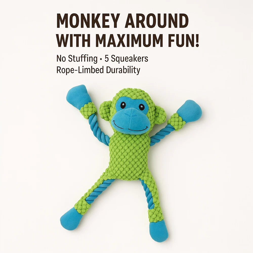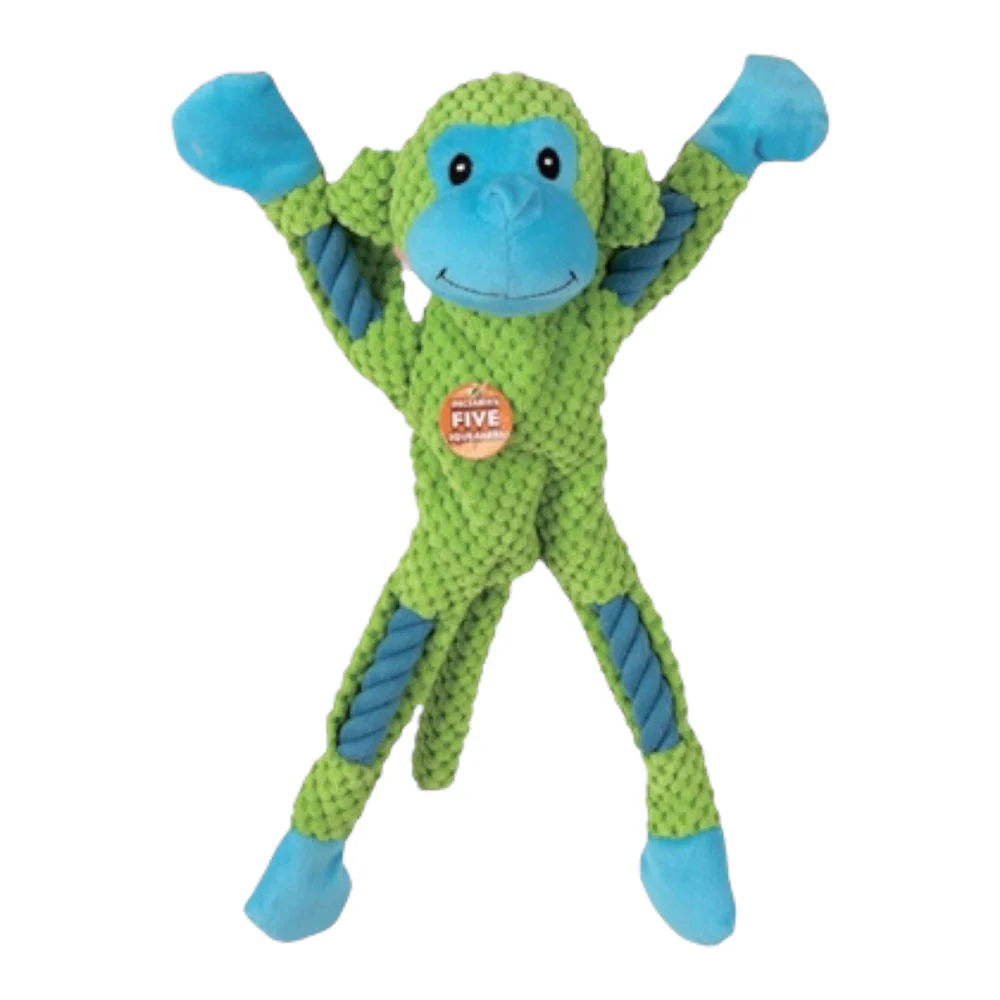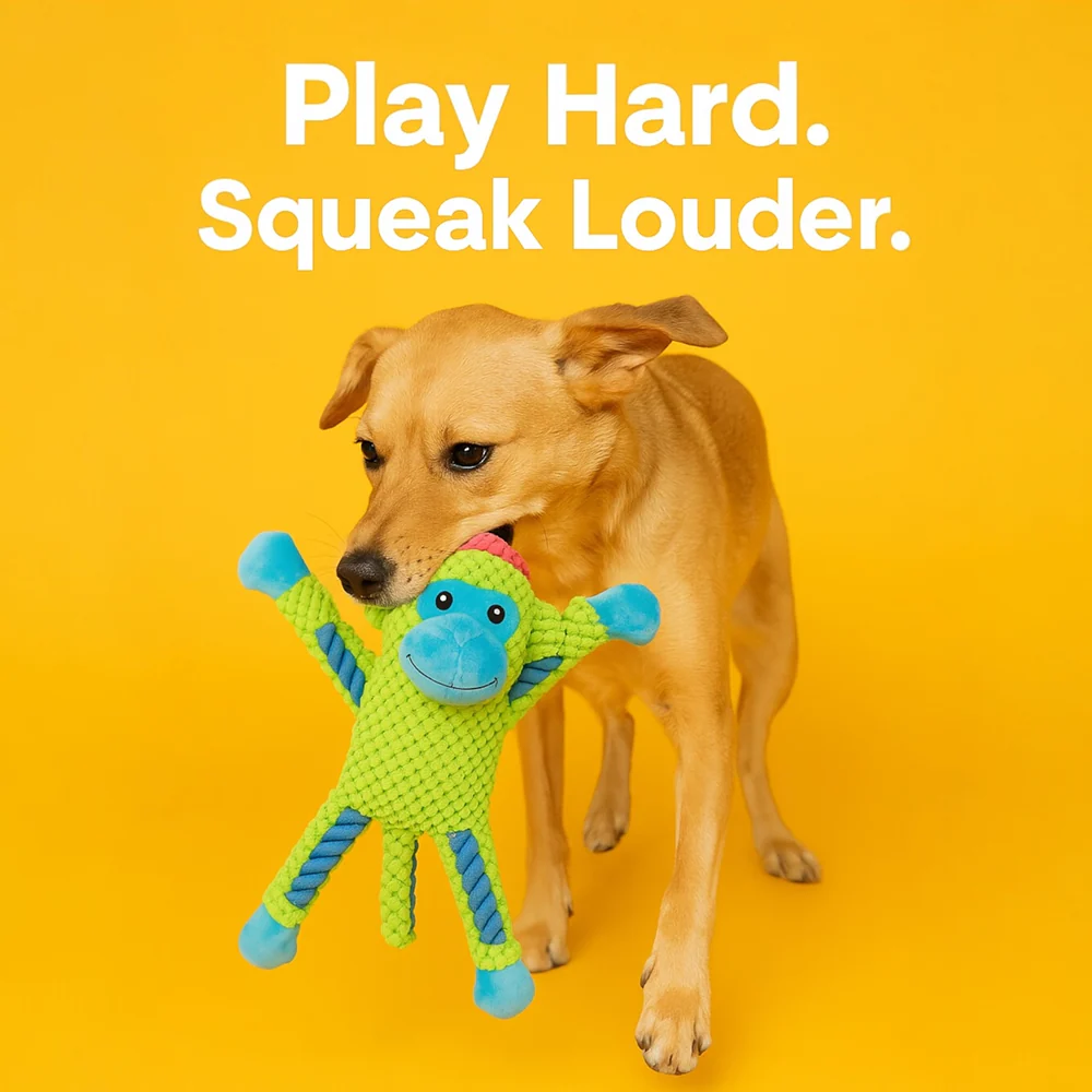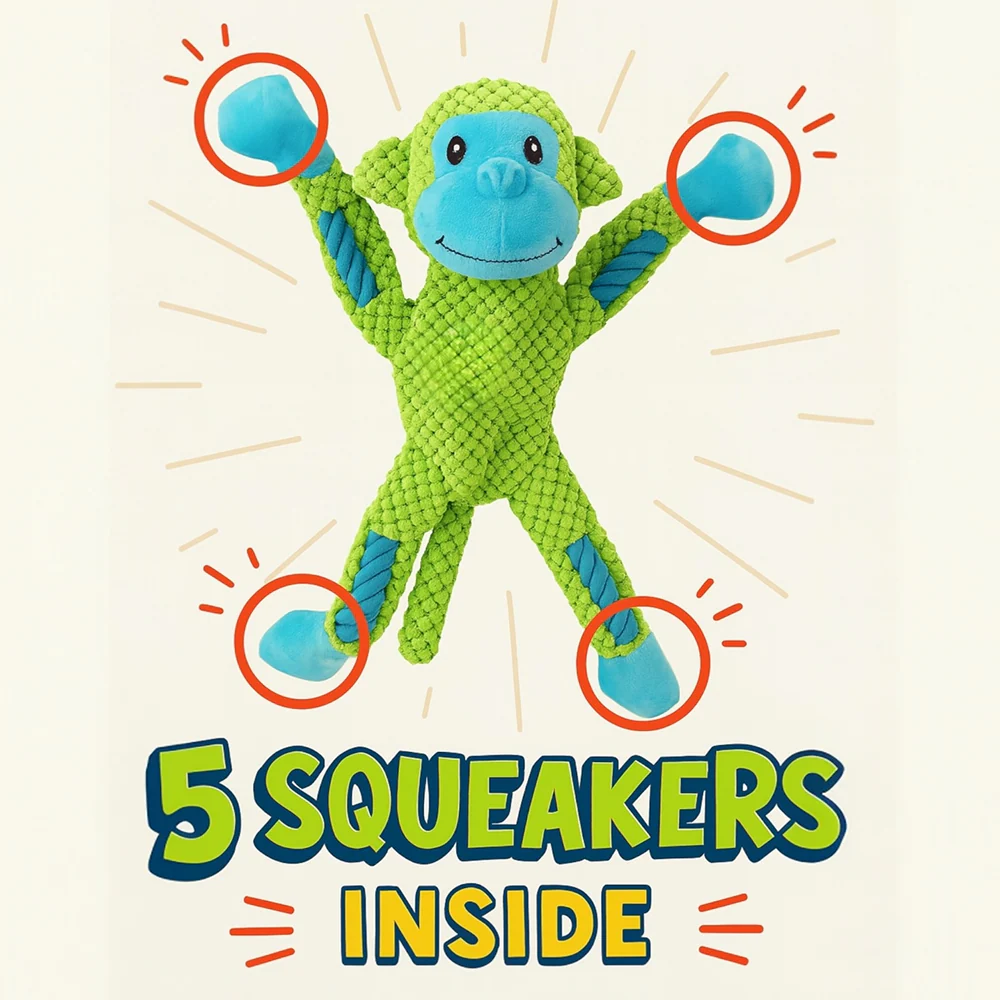 Talking Dog Club Monkey on Ropes with Multiple Squeaker Toy for Dogs (Green)