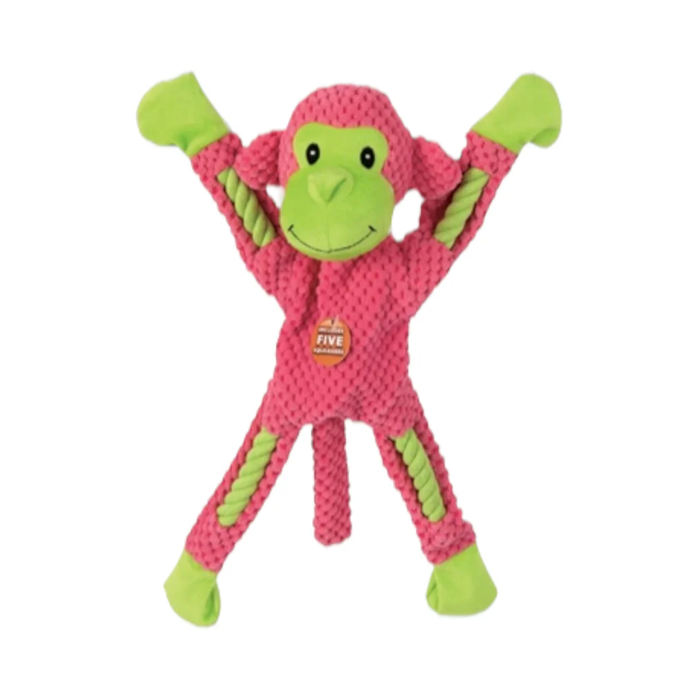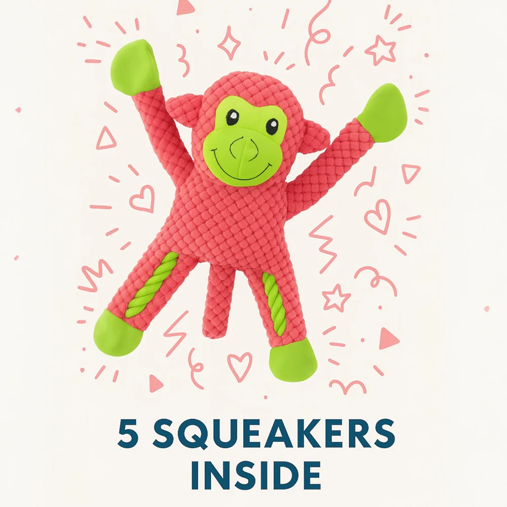 Talking Dog Club Monkey on Ropes with Multiple Squeaker Toy for Dogs (Pink)
