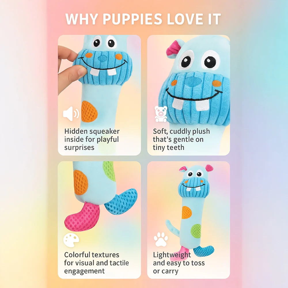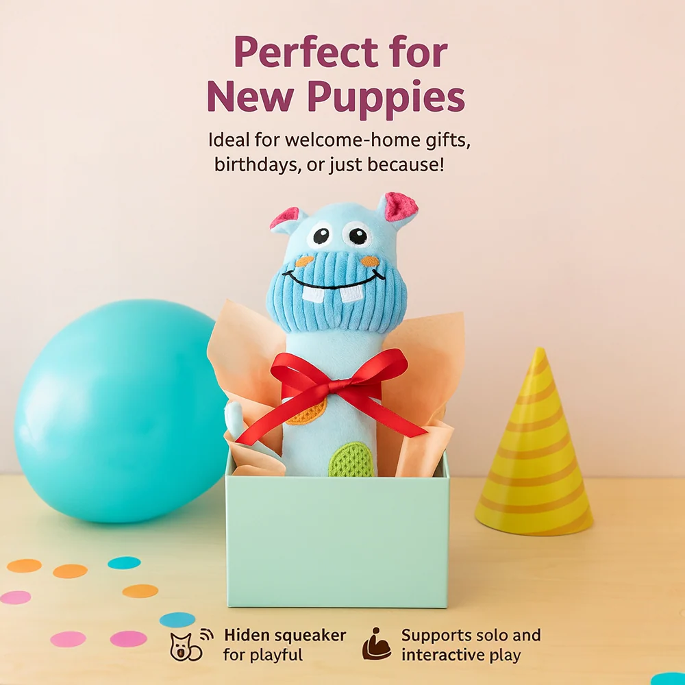 Talking Dog Club Baby Hippo Stick Plush Toy for Dogs (Blue)
