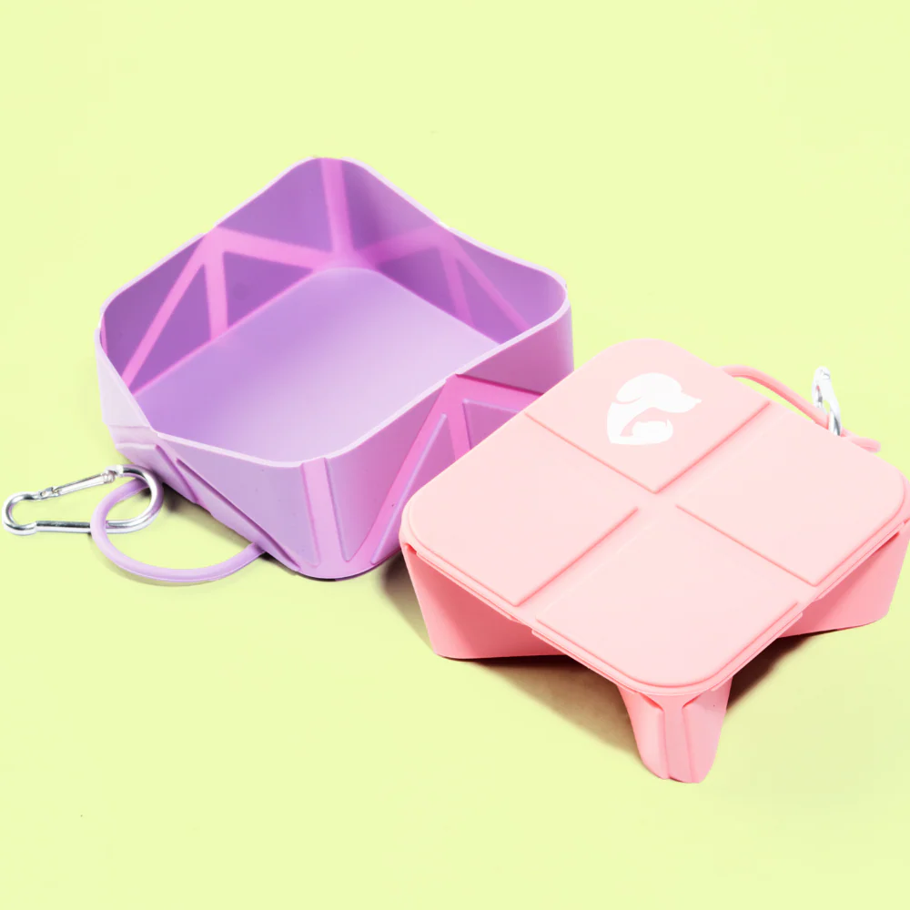 Pet Set Go Foldable Square Bowl for Dogs (Pink)