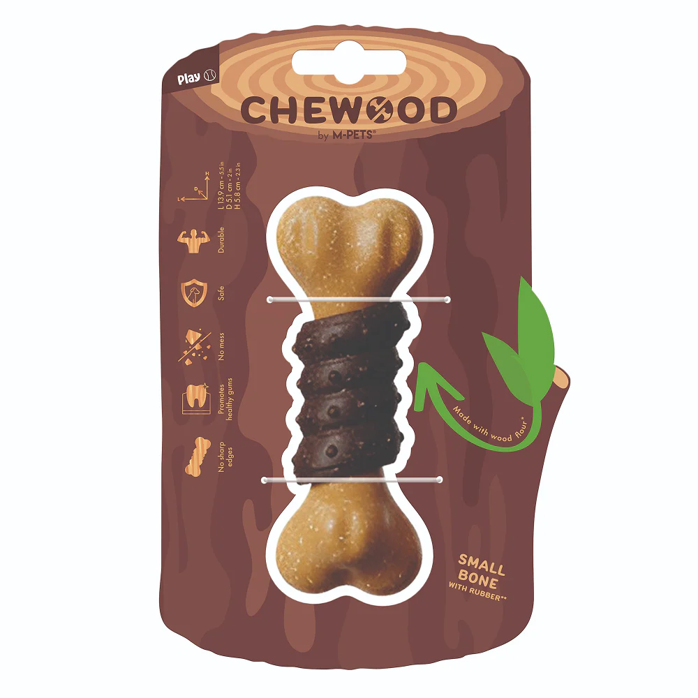 M Pets Chewood Bone with Rubber Chew Toy for Dogs (Brown)