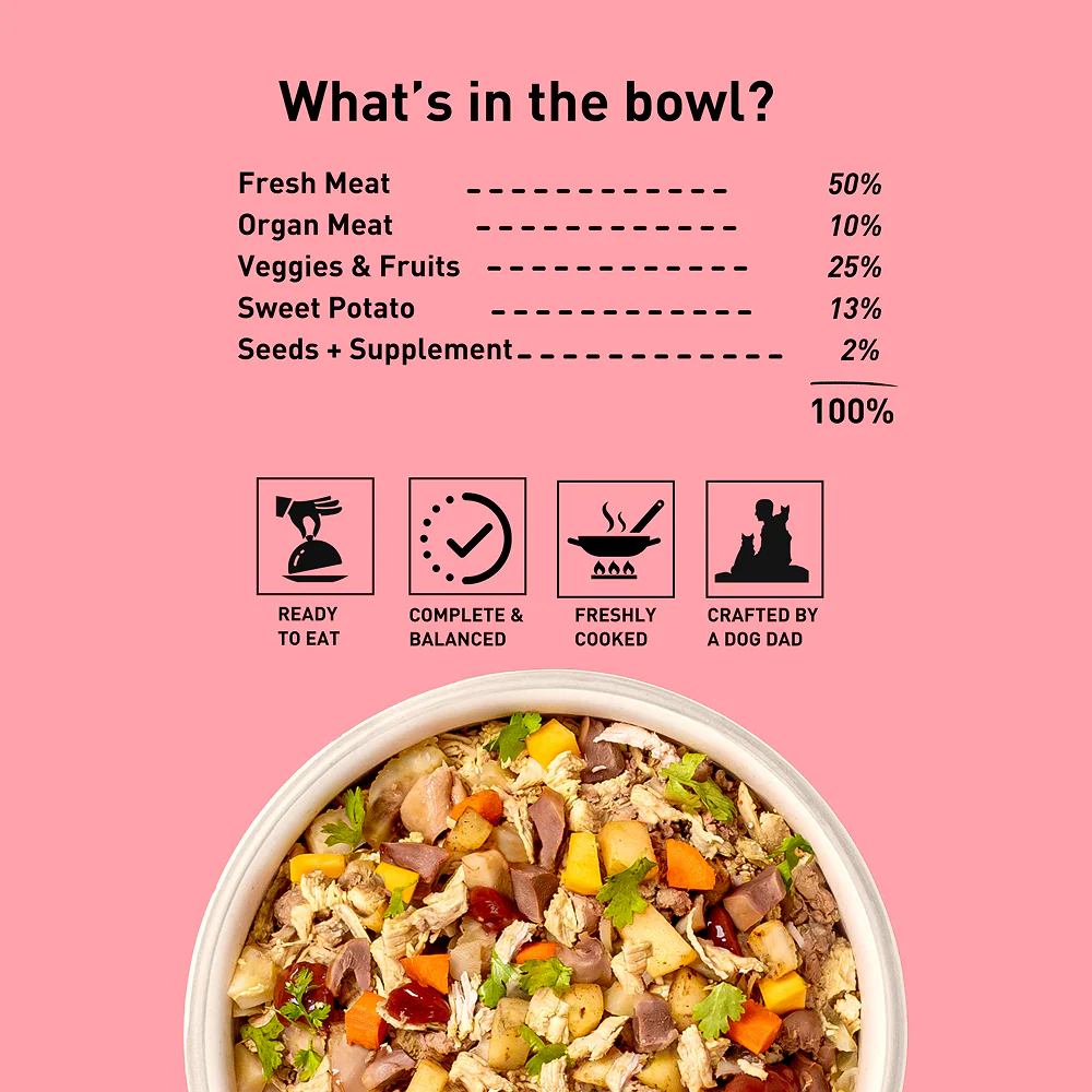 Homiee & Ginger Power Bowl Chicken & Sweet Potato Fresh Food for Dogs