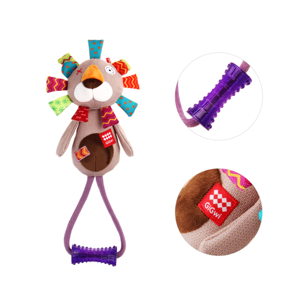 GiGwi Plush Friendz with TPR Johnny Stick Lion Toy for Dogs