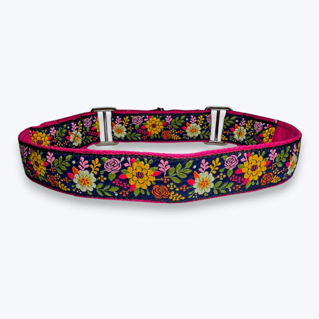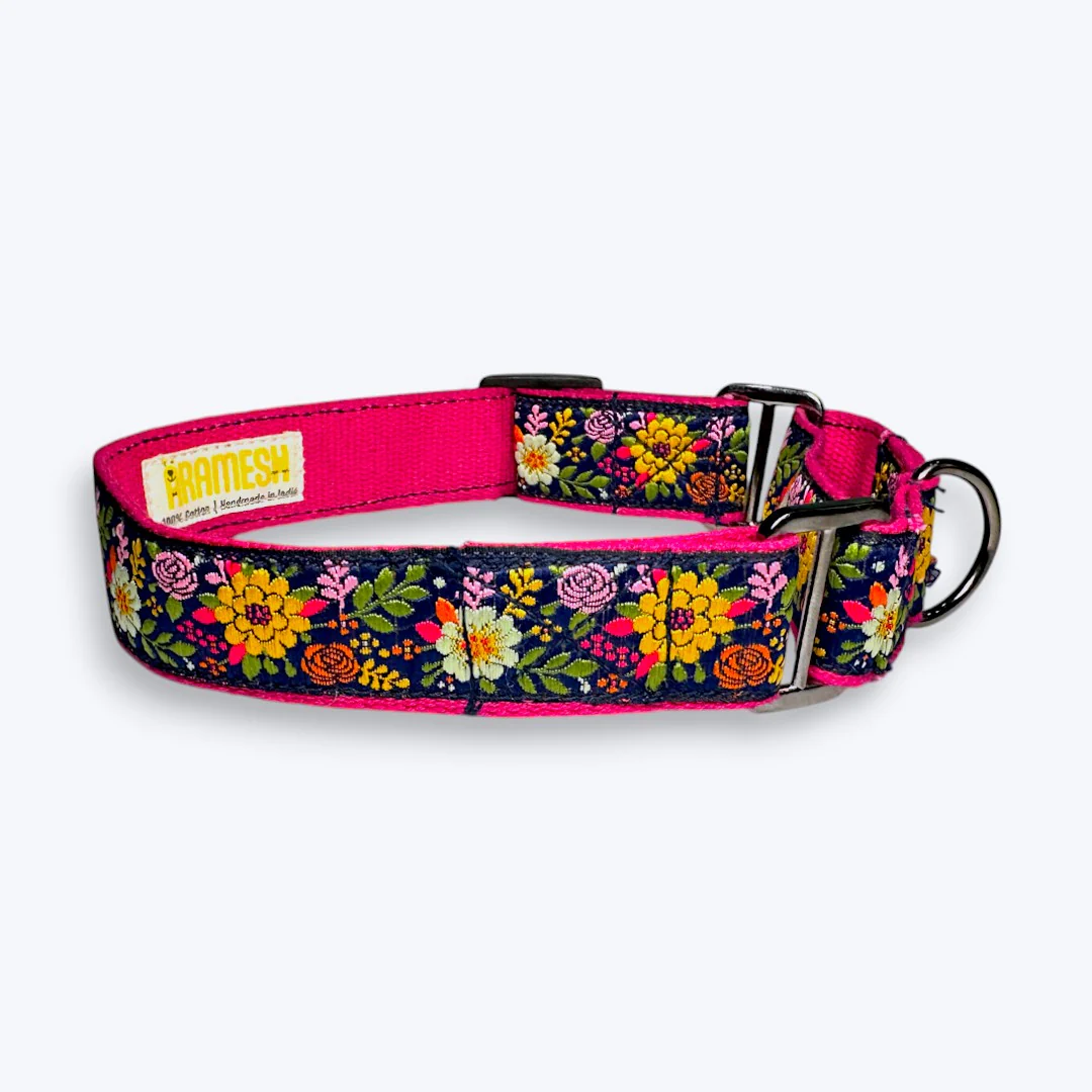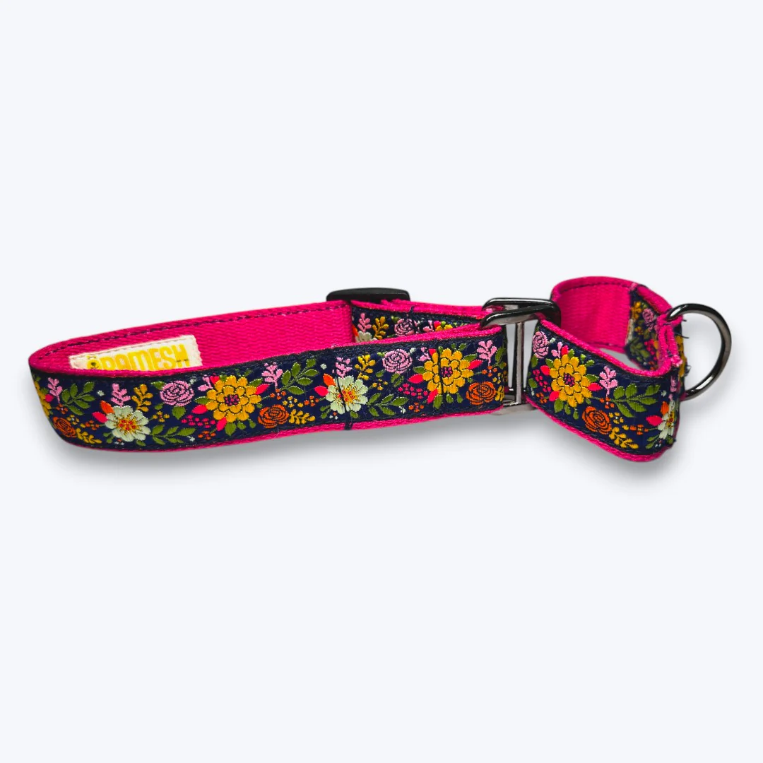 Aramesh Coastal Bloom Martingale Collar for Dogs (Pink and Navy Blue)