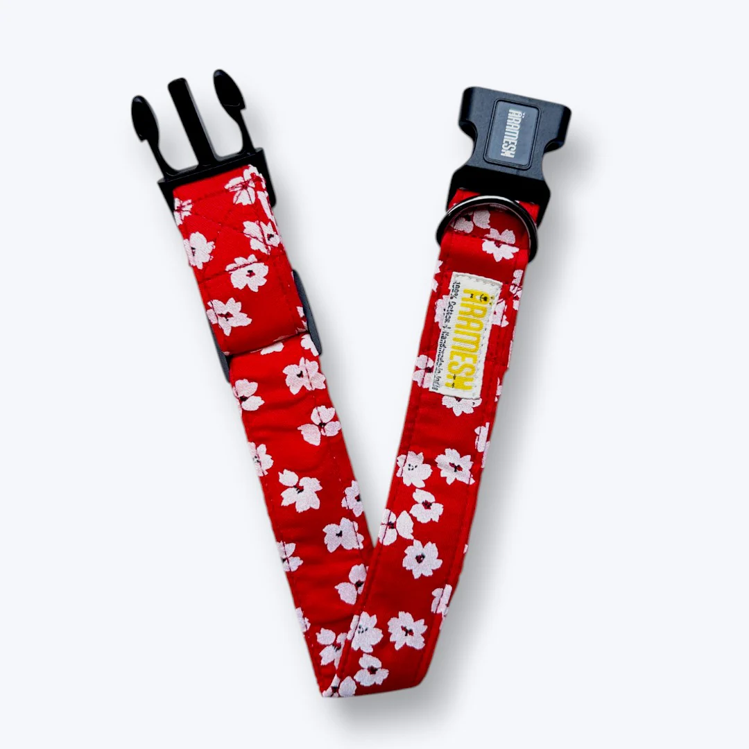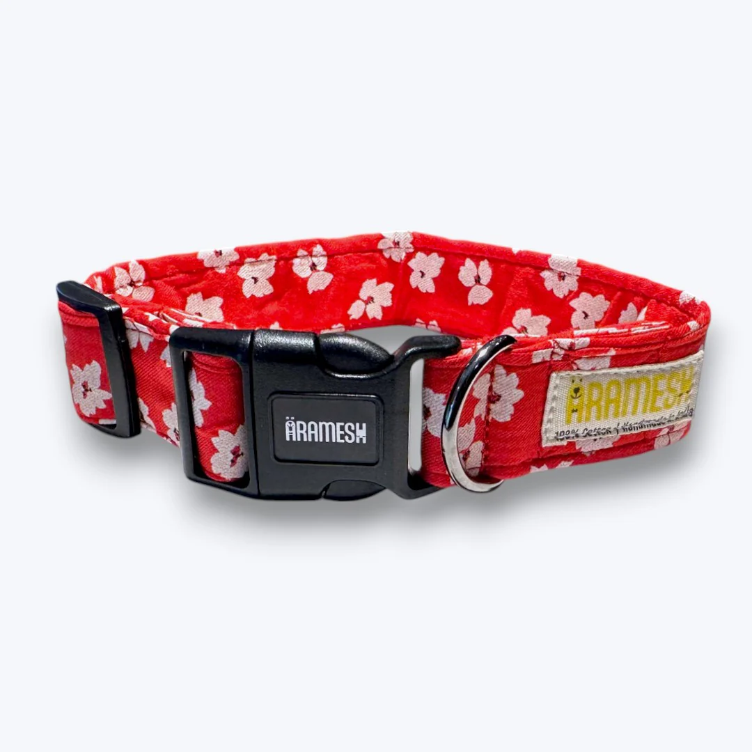 Aramesh Cherry Blossom Adjustable Collar for Dogs (Red and White)