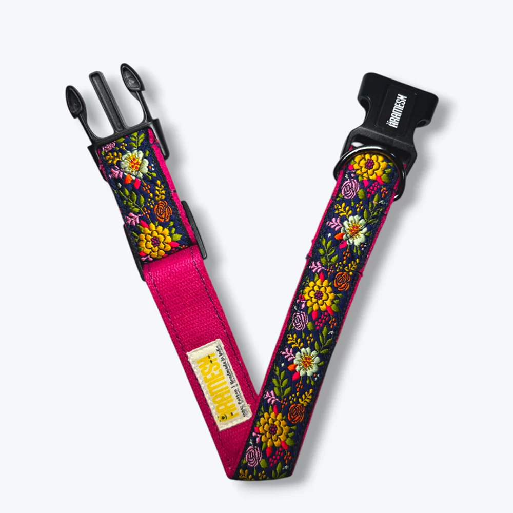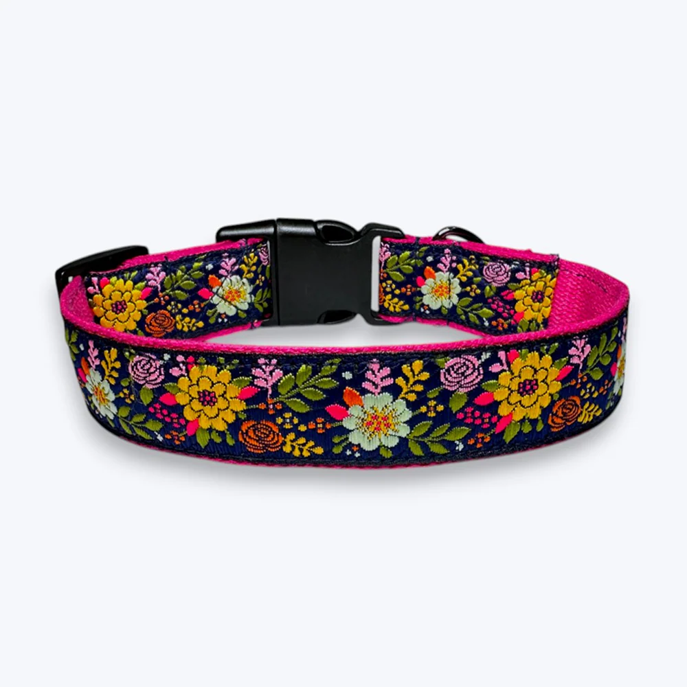 Aramesh Coastal Bloom Adjustable Collar for Dogs (Pink and Navy blue)