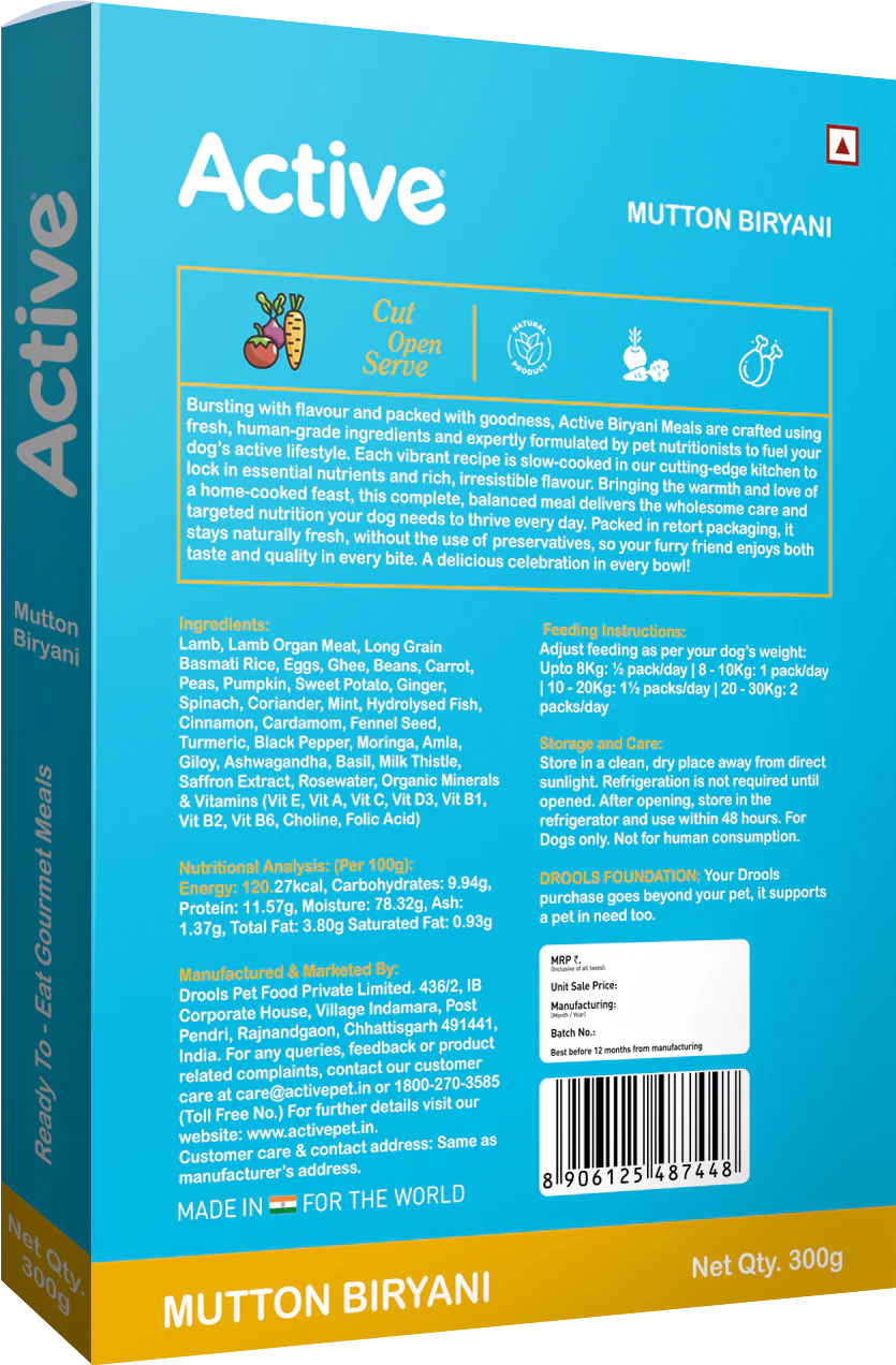 Active Mutton Biryani Fresh Food for Dogs (Buy 1 Get 1)