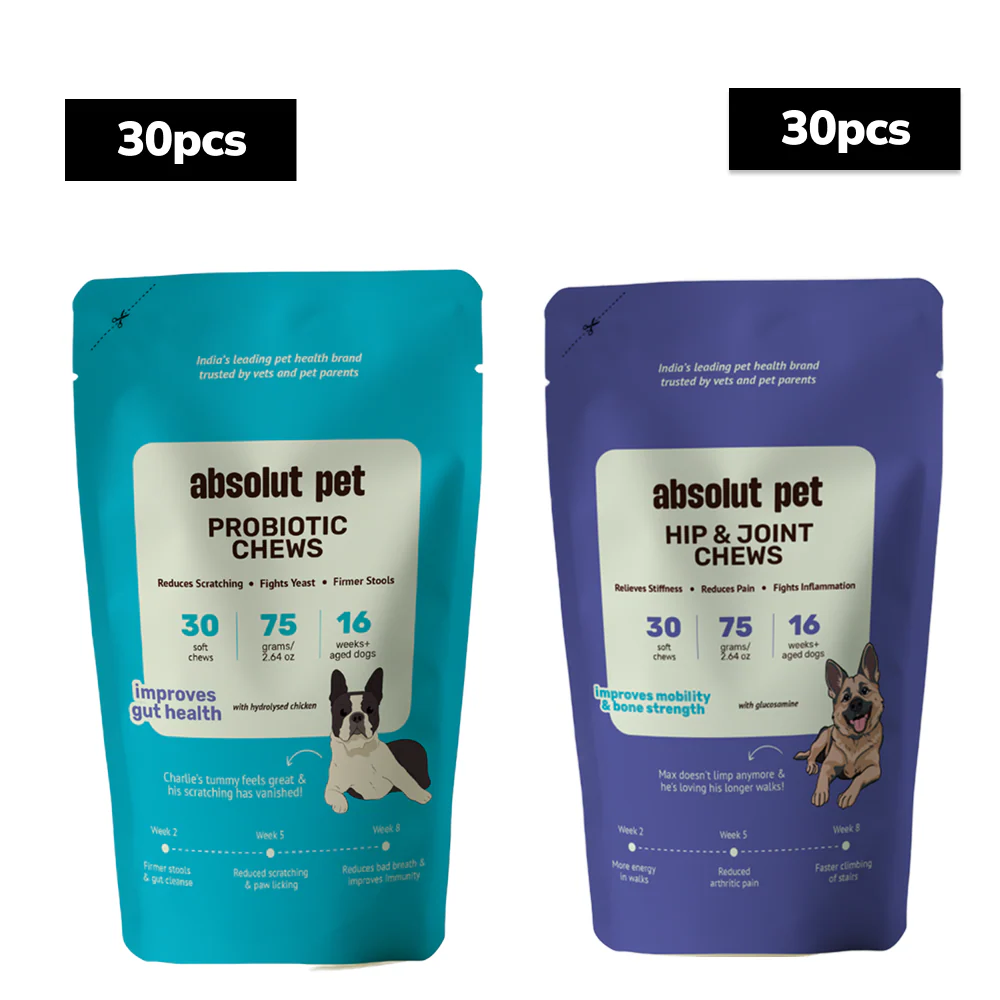 Absolut Pet Probiotics Gut & Hip and Joint Care Health Dog Supplement Combo